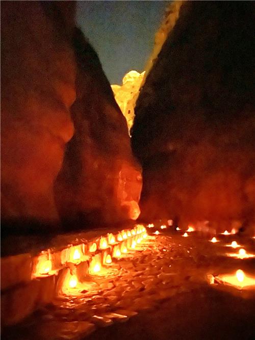 - Petra by Night (each Monday, Wednesday and Thursday evening). Visit Petra lighted by candles, through the Siq until the Treasury. With a traditional Bedouin sitting at the Treasury, music and storytelling.