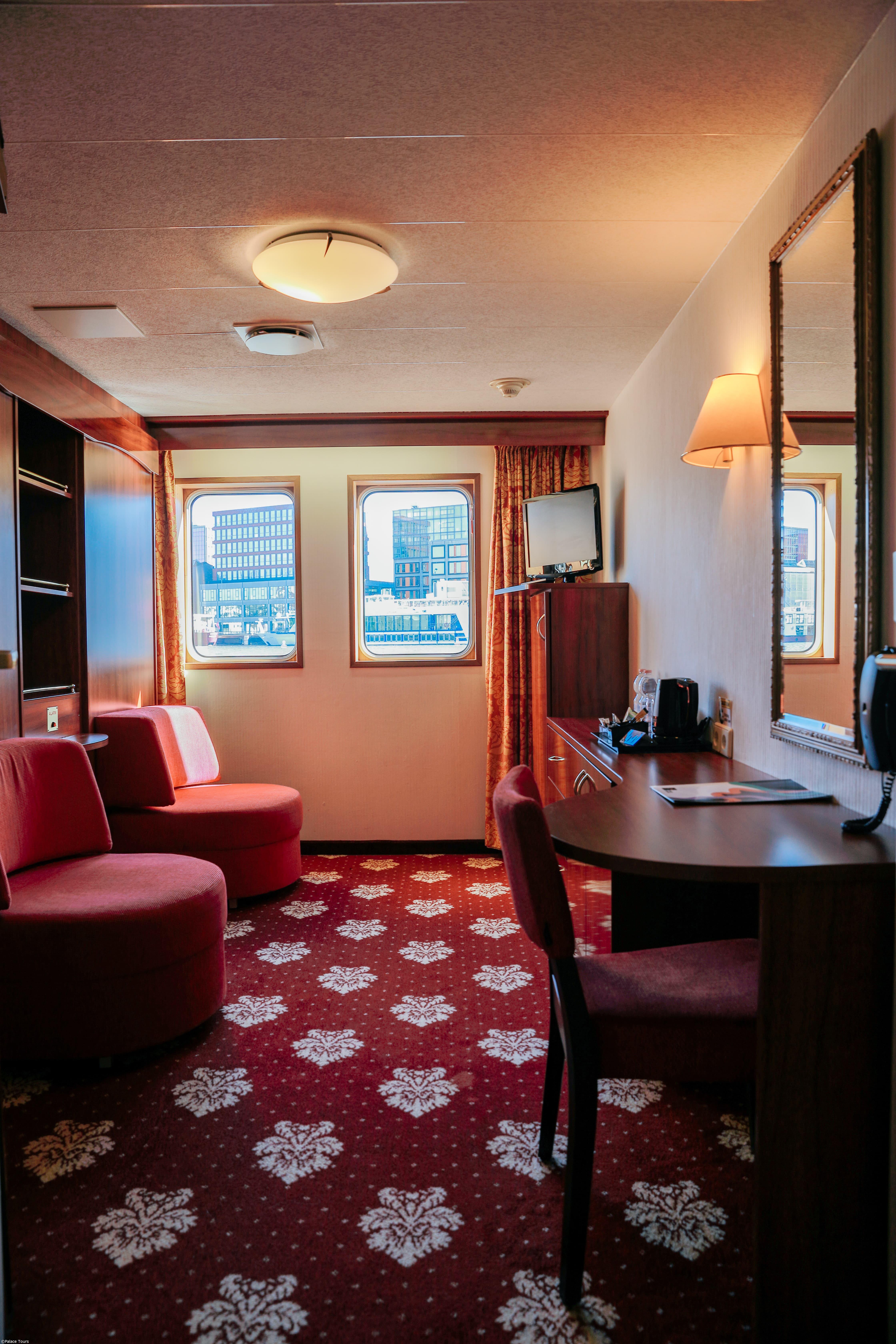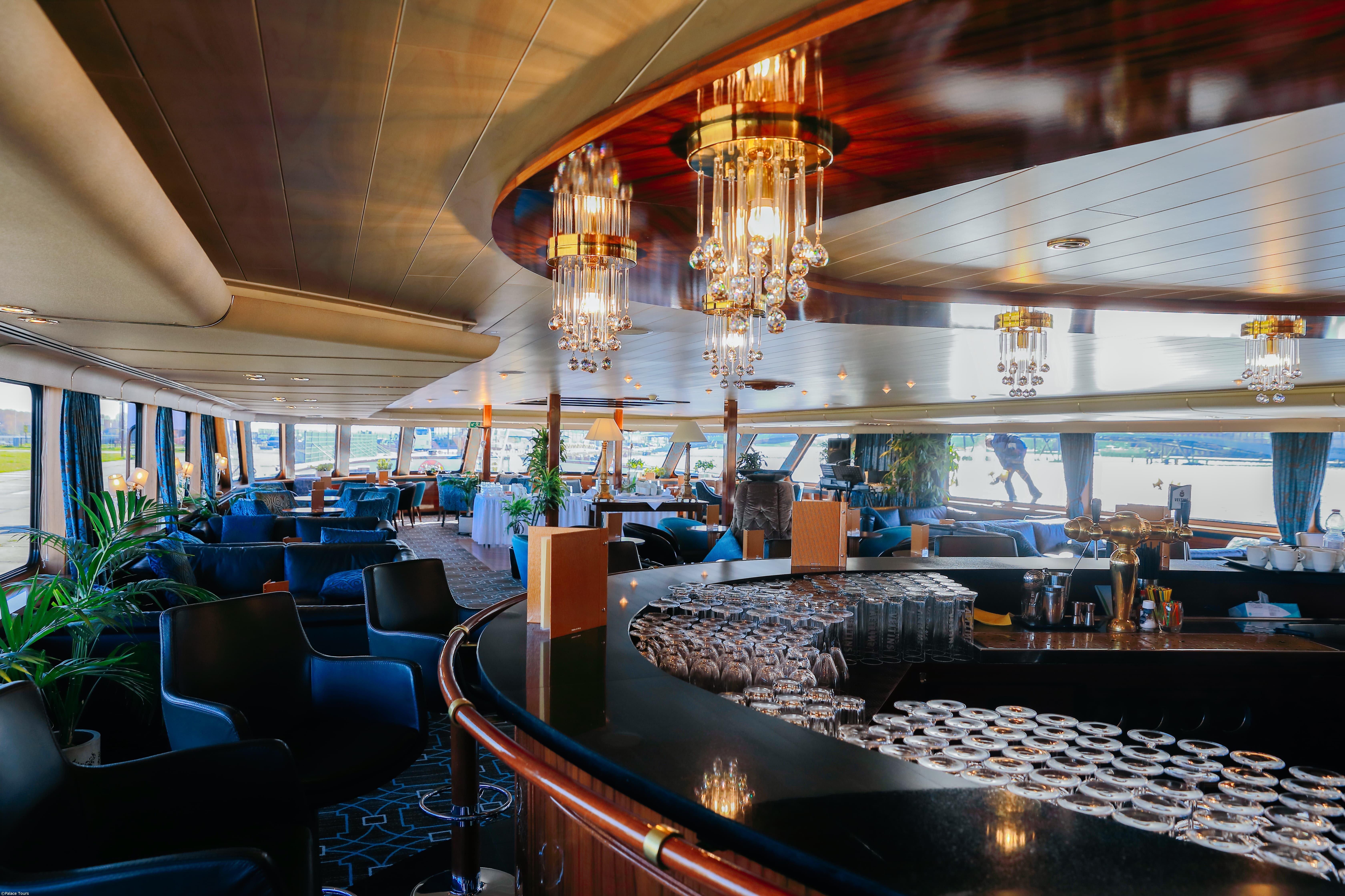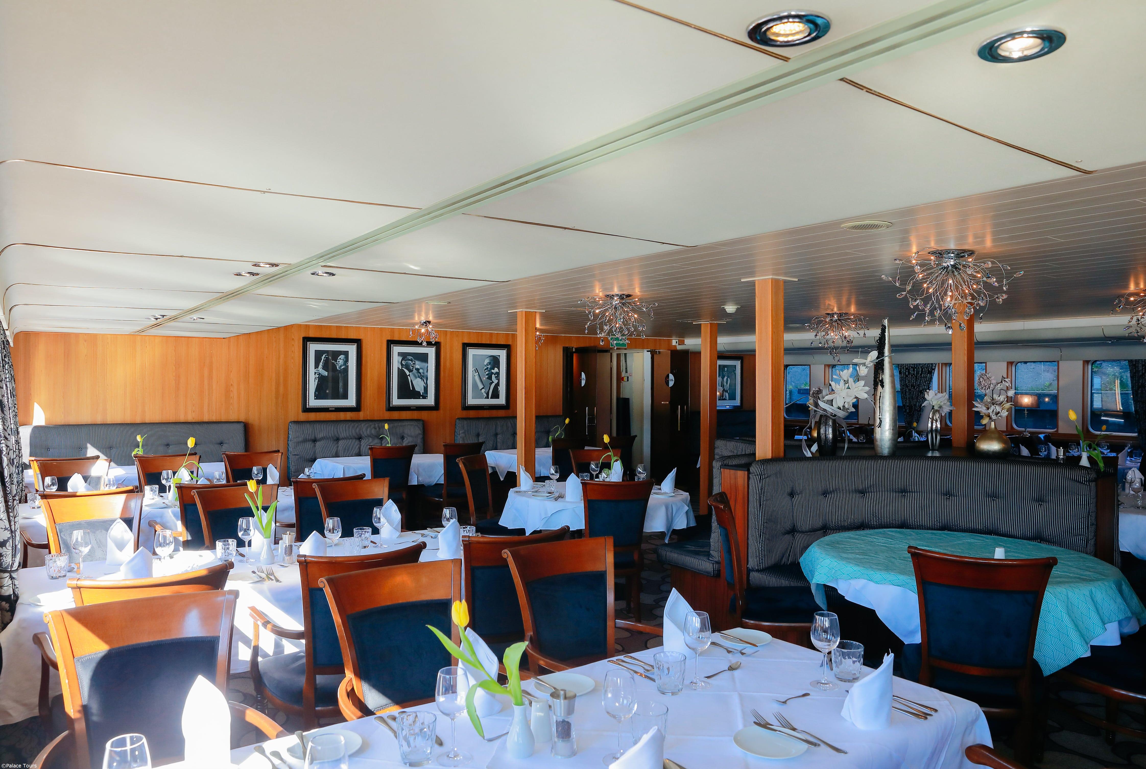 INCLUDED: accommodation in outdoor cabins; 3 visits indicated in the itinerary; full board from dinner on the first day to breakfast on the last; drinks: beer from the tap, house wine, soft drinks, water, coffee/tea at lunches and dinners on board; welcome aperitif (limited hours); 5 o'clock tea with pastries or midnight aperitif; coffee station; live music; welcome and farewell cocktail with a drink included; Captain's dinner; medical assistance insurance; porters on board.
